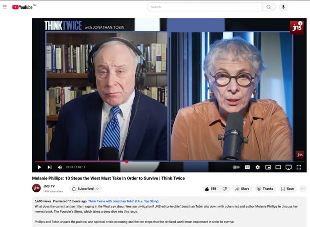 Below Left: Melanie Phillips on JNS “10 Steps the West Must Take In Order to Survive | Think Twice”:-
