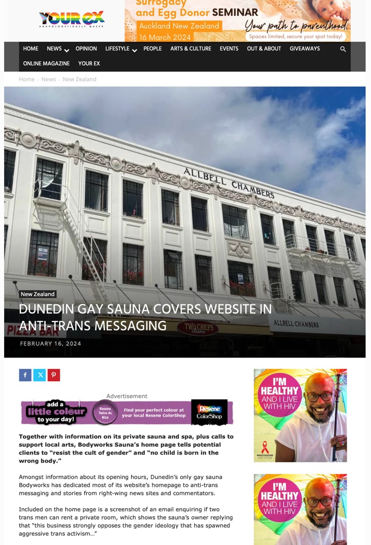 “As New Zealand's national LGBTQ+ media, a number of readers have contacted us about your website.